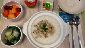 ↑コンファイメントの食事です。結構ボリュームがありました。Confinement(コンファイメント)というだけあって、ご飯も野菜もしっかり入っていてクルミスープも優しい味でした。