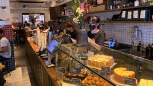帰りに思わずケーキ衝動買いしそう…。午前中なのでチョコレートブラウニーやキャロットケーキがずらりと並んでます。