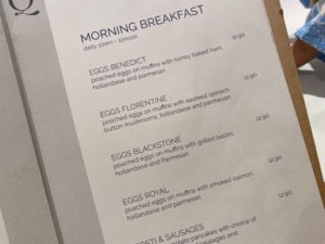 今回はブランチをいただきました。(ポーチドエッグのメニューがこんなにたくさん!)