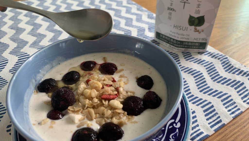 日本に住んでいる日本人でも魚の摂取量が減っていてこのような問題が起きているのに、海外に住んでいる私たちはもっと魚によるオメガ3脂肪酸が摂れていないはず。物理的にも経済的にも毎日魚を摂取することは難しいので、えごま油で補えればと思った次第です。