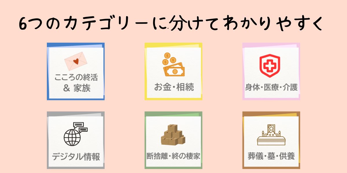 💖終活を6つのカテゴリーに分けて、終活ワークを細分化したことにより