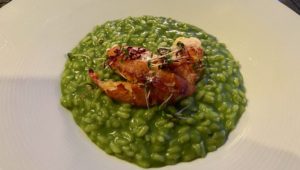 お次はリゾット!緑はほうれん草、赤はロブスターでおしゃれな色合い。CusumanoのInzolia Terre Siciliane IGT のワインを合わせて。特に香りがよかった!リゾットはほどよい塩加減&火の入り方。ロブスターは身が厚くて食べ応え十分。塩の香りもたまらない。さらにお酒が進む…! 止まらぬ食欲とお酒のペアリング。
