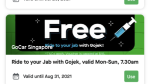 いまGojekワクチンの接種会場へ向かうタクシー、接種会場からのタクシー代2回分(それぞれ上限15ドル)が無料になるキャンペーンを行っています。(詳しくはココをチェック)