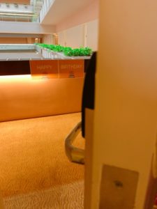 A.隔離中は大変なことも多かったのですが、良いこともありました。隔離中に誕生日を迎えたのですが、昼ごはんを食べた後の時間に部屋のチャイムが鳴ったんです。なんだろうなと思って扉の外を見ると、扉の向こう側に明るい色の貼り紙がしてあって、よく見ると「ハッピーバースデー」と書いてあったので驚きました。ホテルからのサプライズです。