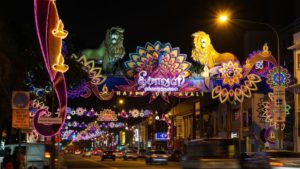 📸フェスティバルのライトアップ。リトルインディア、新年のオーチャードや、旧正月のチャイナタウンなどでも見られるライトアップ方法ですね。