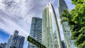 📸ベイエリアの高層ビルの風景。地震や津波の影響がほぼないシンガポールだからこそ可能な、細長く奇抜なデザインのビル群。