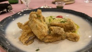 アンティパストの2品目は、フリット(Rane Fritte)を注文。シェフが「美味しいぞ~食べてみてよ!」と言われたFrog leg のフリットです。(カエルの脚ですよ♪)油っぽさを感じず、美味しくいただけました。チキンと若干似ているテイストのFrog Leg。さっぱりしたお味です。