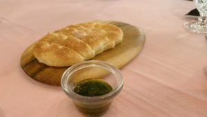 まずは、フォカッチャとバジルのピストゥが出されます。フォカッチャもピストゥも自家製。このピストゥが美味しくて、パンをついつい食べ過ぎてしまいます。レストランのスタッフにも「美味しいでしょ?」と何度も聞かれたので、このレストランの人気アイテムの1つだと思います。