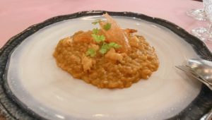 そしてメイン。パスタにするか迷いましたが、リゾットをオーダー。結果、これが「大正解」でした。私たちが頼んだのは海老のリゾット(Risotto Red Prawns)。これがただのリゾットではない!おいしくてとまらない美味しさのリゾットでした。家でも作れないかと思い、レシピをシェフに聞いてみましたが、もちろん「ヒミツ」だとのこと。(それはそうですね。)トマトソースが尋常ではないくらい美味しかったです。恐らく(私の予想だと)、海老の殻を炒って、その殻でスープを取り、そのスープにお米を入れそのままリゾットに。そしてトマトソースで味をつけ作ったのではないかと思うのですが、本当のところはどうなのでしょう。(笑)。決め手はやはりトマトソースの美味しさにあり!このリゾット、お値段もかなりいいお値段なのですが、それだけの価値があるお味です。一緒にいた友人も、「このリゾットのためだけに、またこのレストランに来たい!」と言っていました。