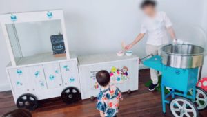 わたあめコーナー。3歳娘はわたあめ作りに挑戦。