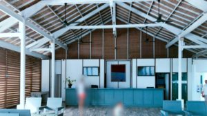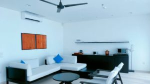 部屋の様子。こちらが一階。(一階には、リビング、バスルーム、トイレ、テラス、プール)