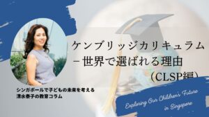 ※今回はシンガポールのインターナショナルスクールで一般的なCLSP、IGCSE、A-levelsについて記載しましたが、ケンブリッジプログラムは他にもプログラムがあります。詳しくはホームページをご確認ください。