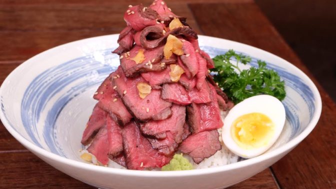 和牛もも肉のマウントローストビーフ丼 $24.90