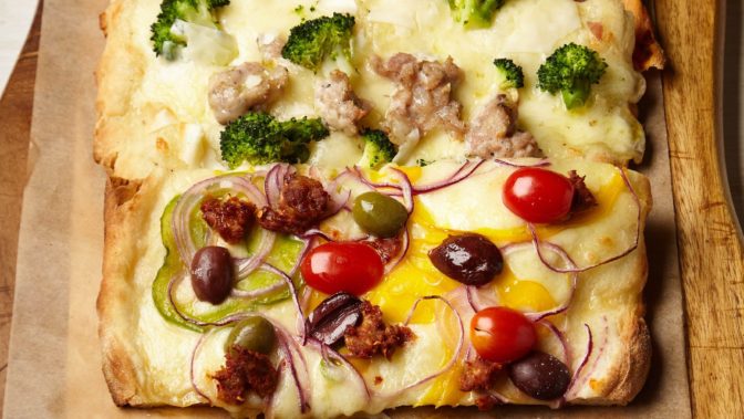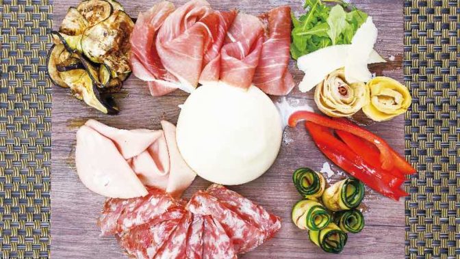 前菜、メイン、 デザートから2 品または3 品選べ、すべてに自家製ブルスケッタが付く。