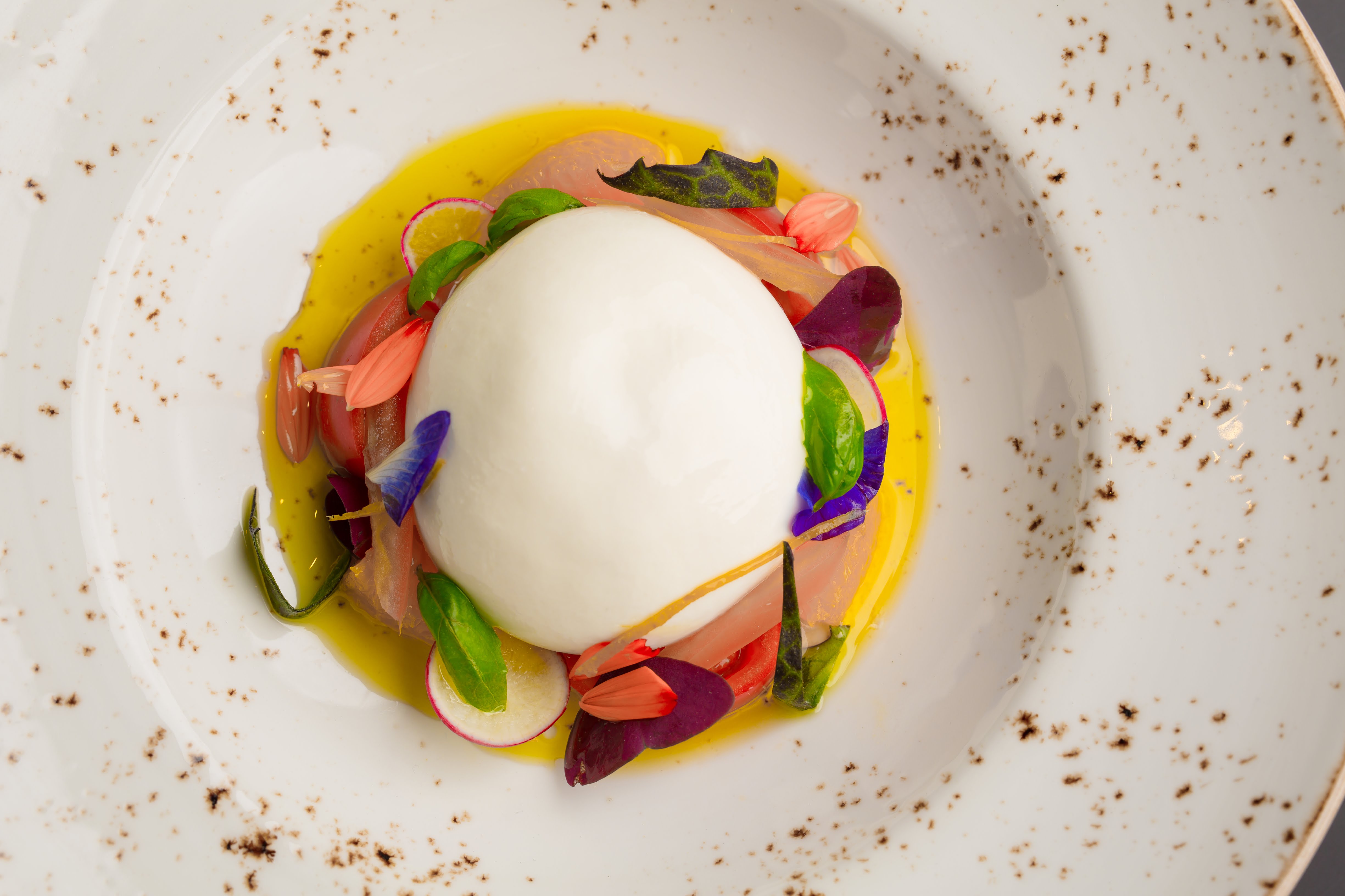 思わずうっとりするほど目にも美味しいブッラータチーズは、ナイフを入れるのがもったいないほどのクオリティ