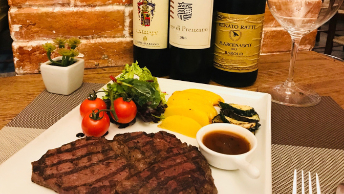 ワインとのマリアージュを楽しみたいリブアイステーキは、デートでオーダーしたいメニューの一つ。ジューシーな赤身と香ばしい脂身のバランスが絶妙