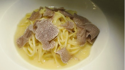 この時期の同店でぜひ 1 度は試してほしいのがイタリア・アルバ産の白トリュフのパスタ。高田シェフがイタリア滞在8年間のうち4年間を過ごしたピエモンテ州は白トリュフの産地。