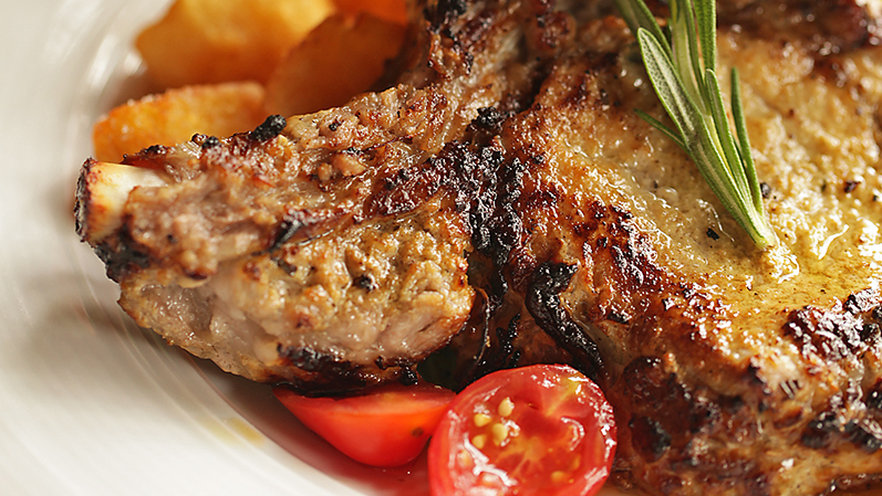 焼き加減が絶妙なローストポークチョップは、ワインをすすませ、会話を弾ませる。食べればきっと思わず笑顔に