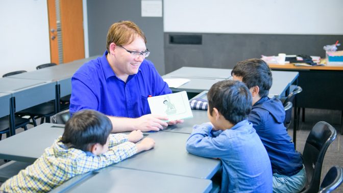 英・中のネイティブ講師による、1 クラス平均3 名のクラス。3 名で新規クラスを開講できるので、友人たちと一緒に希望の曜日・時間を合わせた受講ができる。レベルに応じたストーリーを読みながらスピーキングと語彙を学び、アクティビティやゲームを盛り込むから、子どもたちの学習意欲を高めることが可能。