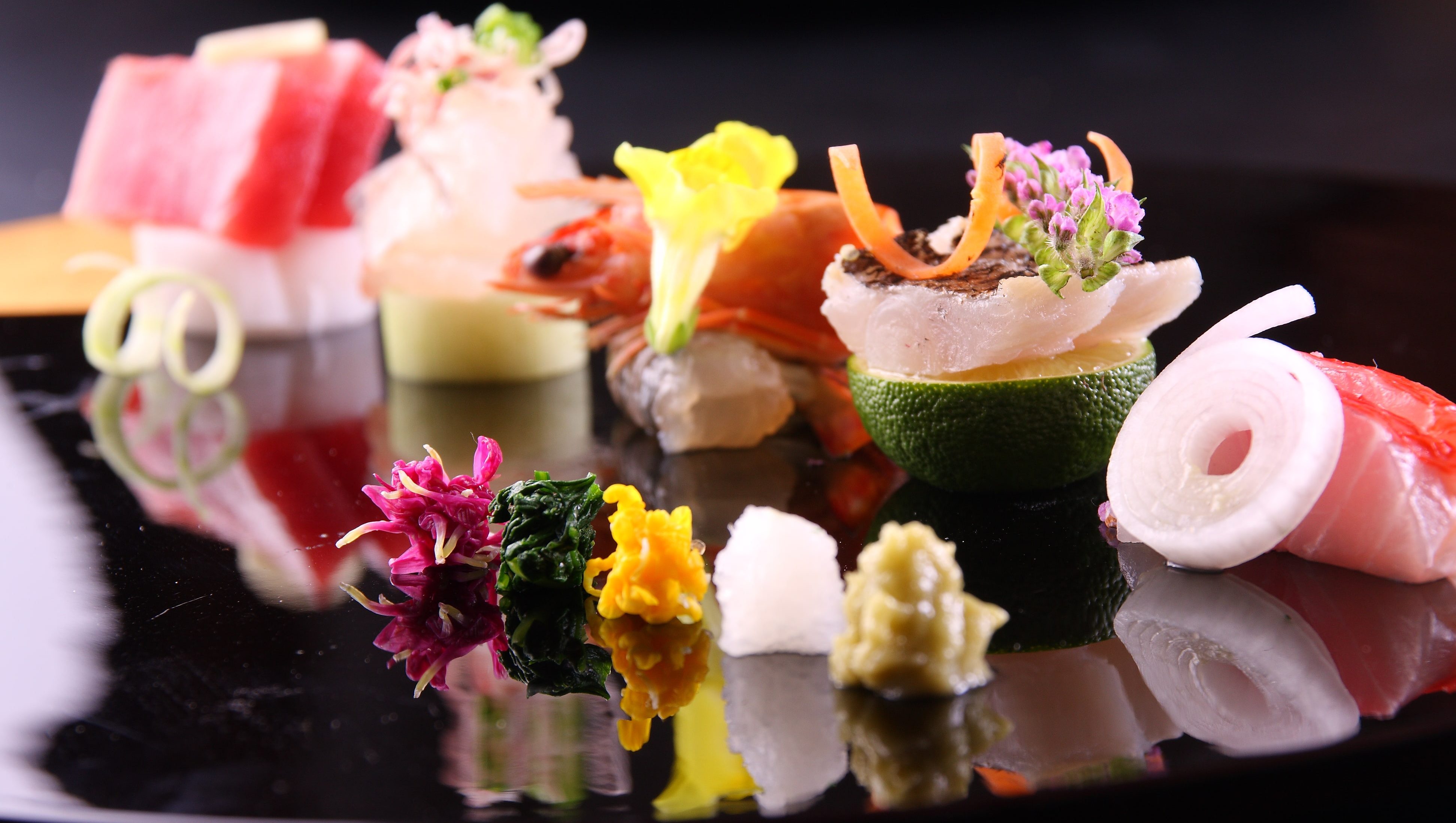 マヨルカ製の椅子、無垢のオーク材によるカウンターなどきめ細やかにデザインされたダイニングスペースで、洗練の日本料理を提供する寿司店。コンセプトは「4つ星の価格で6 つ星の料理体験」だ。おまかせ握り、特選刺身盛り合わせなど、同価格帯の料理店では見られない創作性と質の高さを追求する。ウナギや焼肉丼などをリーズナブルにいただけるランチも人気。