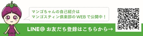今回のイベントはマンゴスティン倶楽部のLINEから募集しました。これからの特別イベントを開催していくので、まんごちゃんLINEとまだ友達になっていない人は、下のORコードからぜひ登録してね。